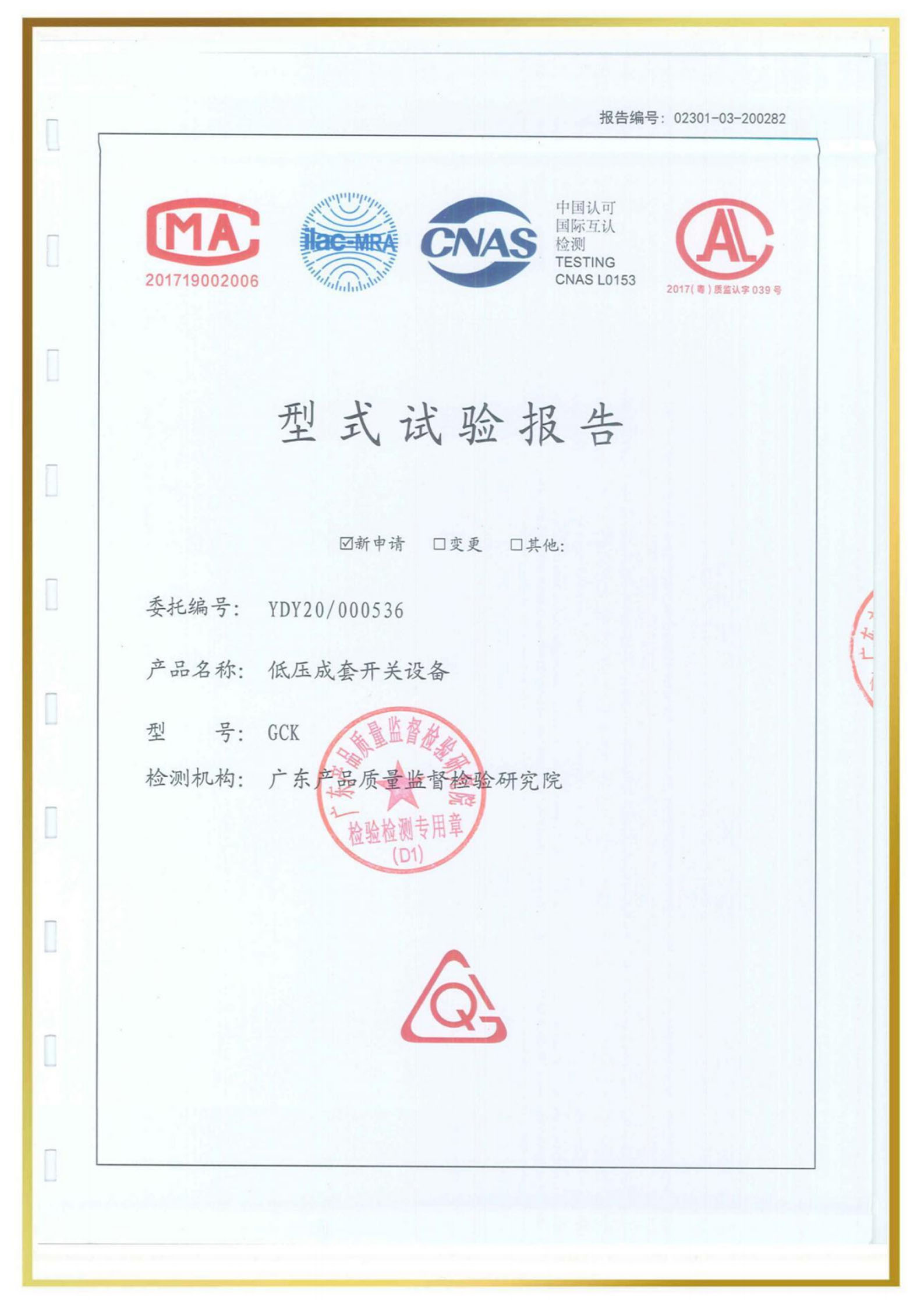 檢驗報告型號:GGD