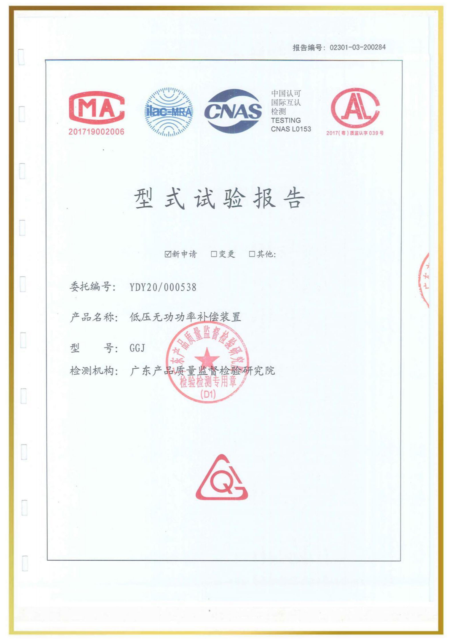 檢驗(yàn)報(bào)告型號(hào):GGD