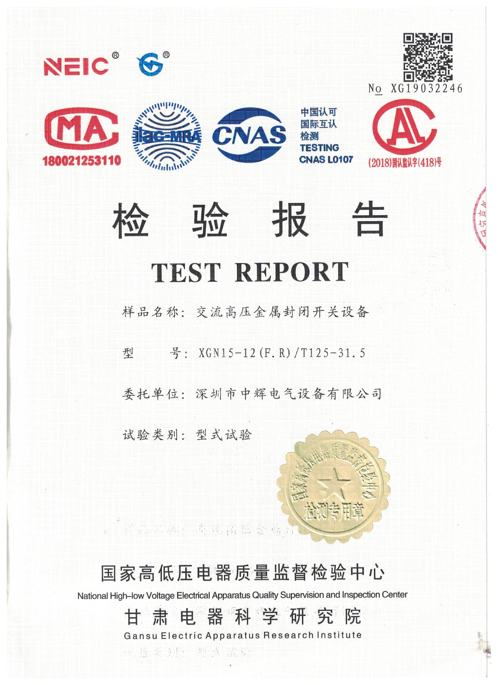 檢驗(yàn)報(bào)告型號:GGD
